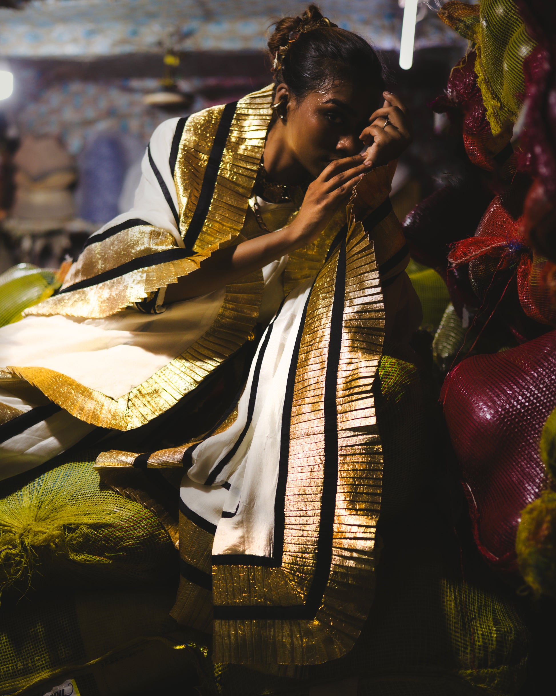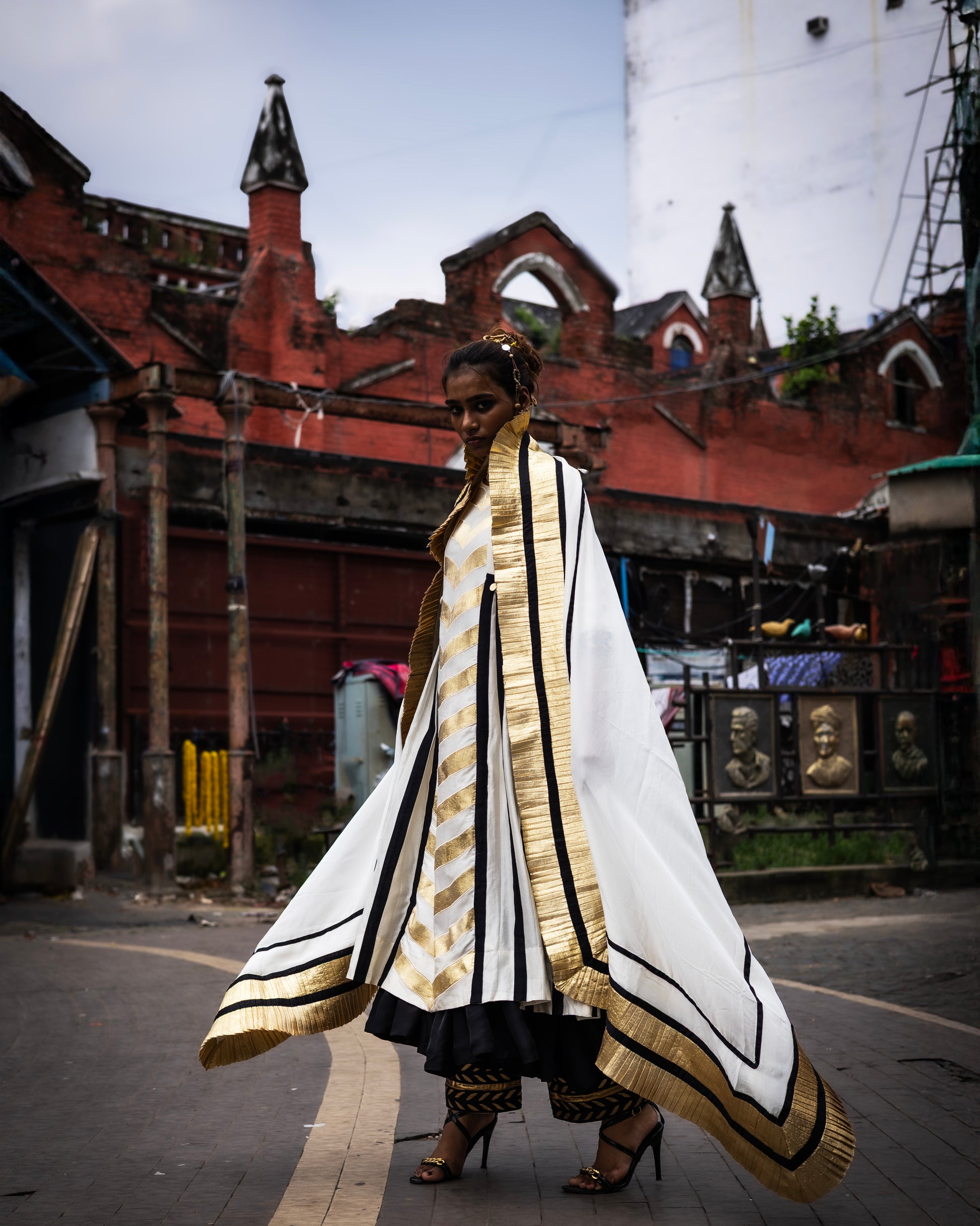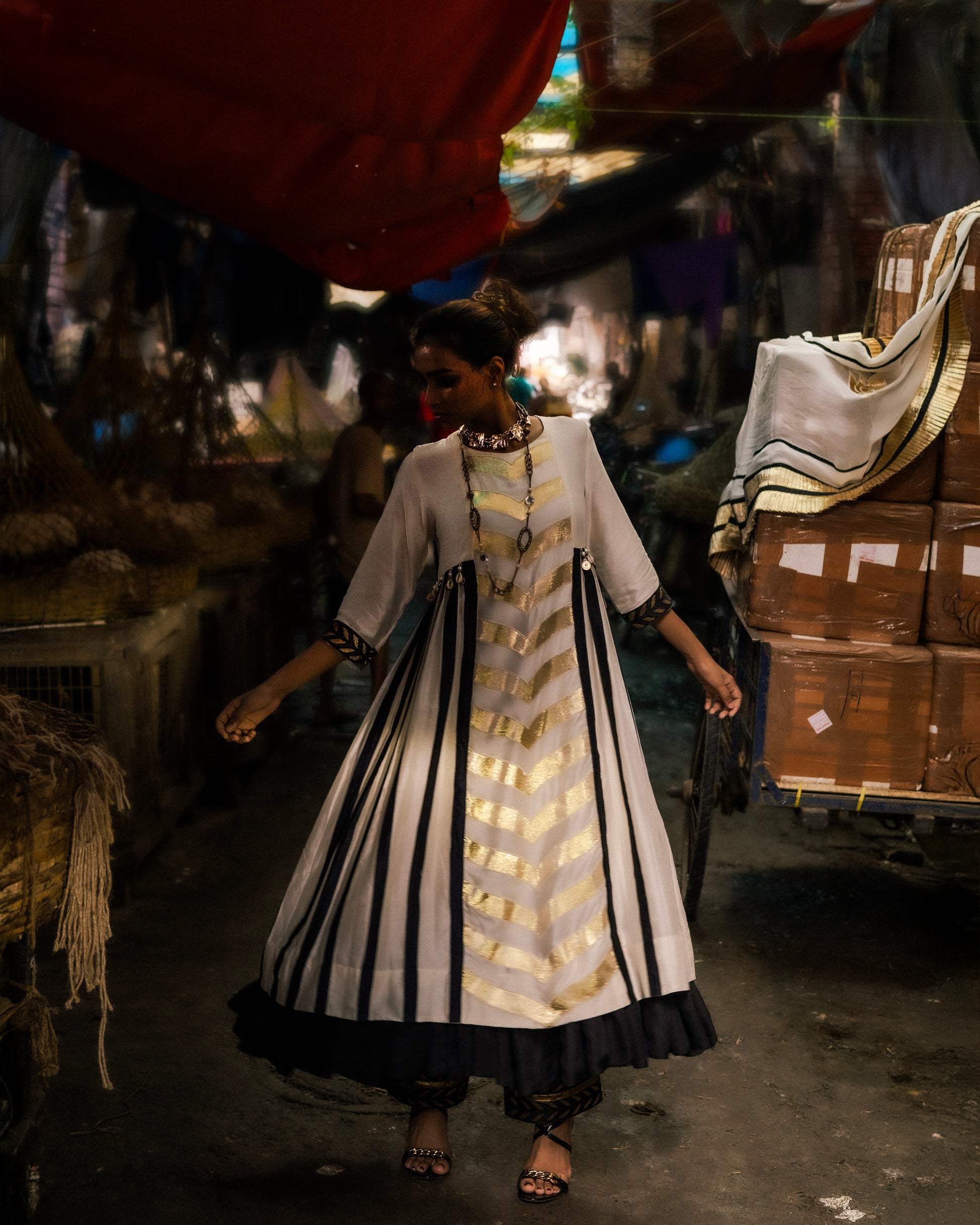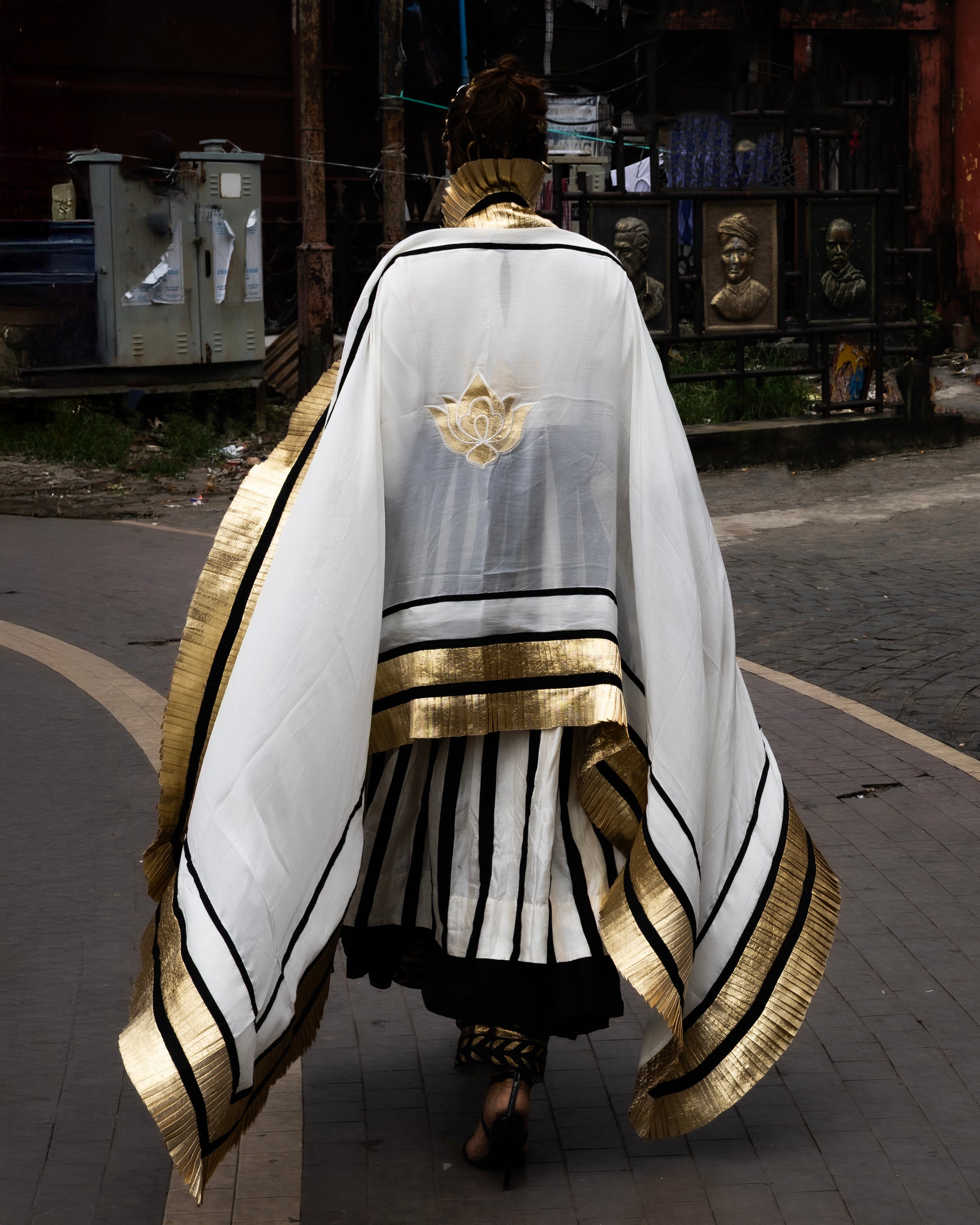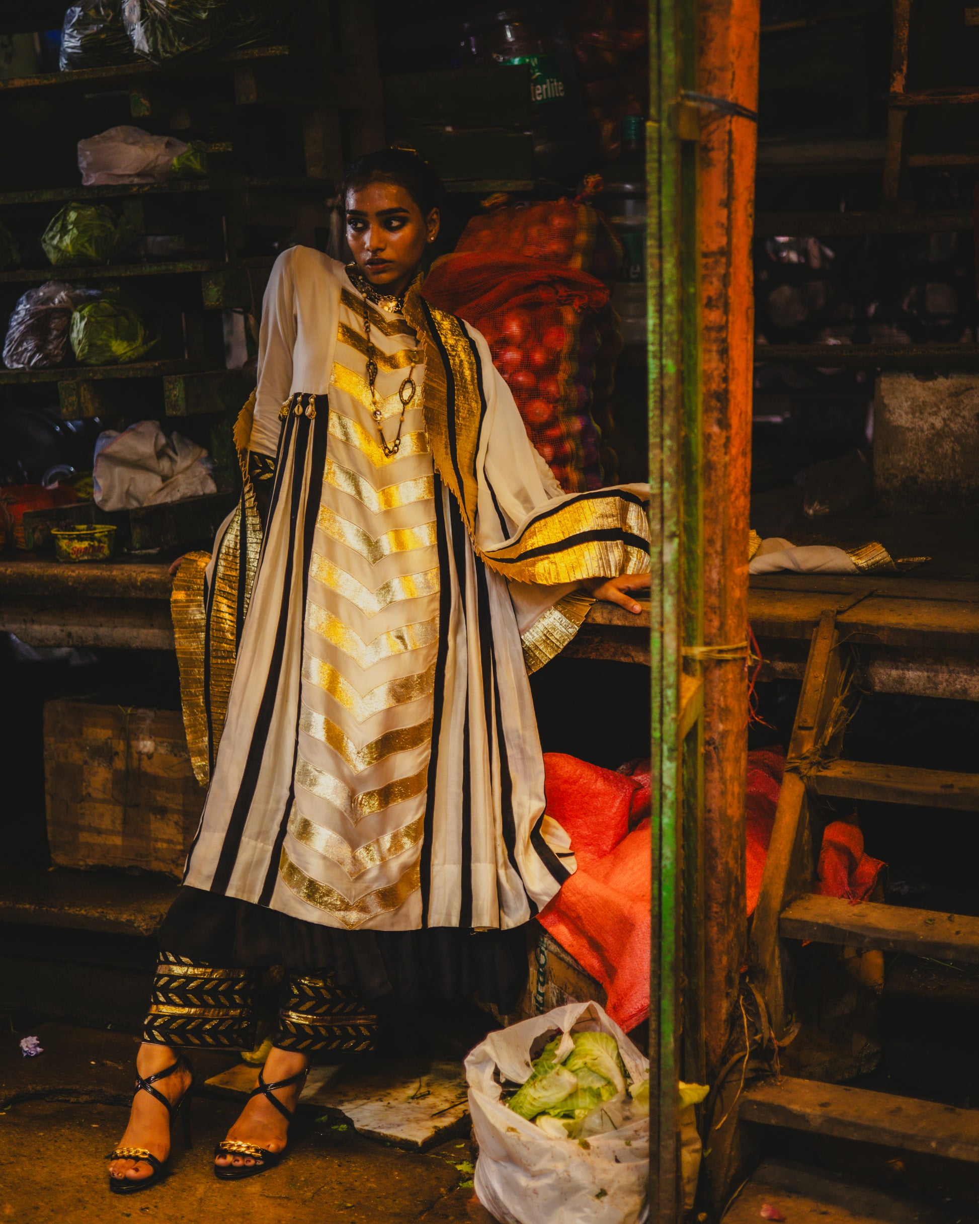 Elevate your style with a stunning ensemble featuring a CHANDERI KURTA adorned with delicate GOTA PATCHWORK, a statement Organza DUPATTA embellished with PLEATED GOTA. Completing the look with COTTON PANTS that are flared with a stylish touch. Make a statement with this timeless and elegant outfit.